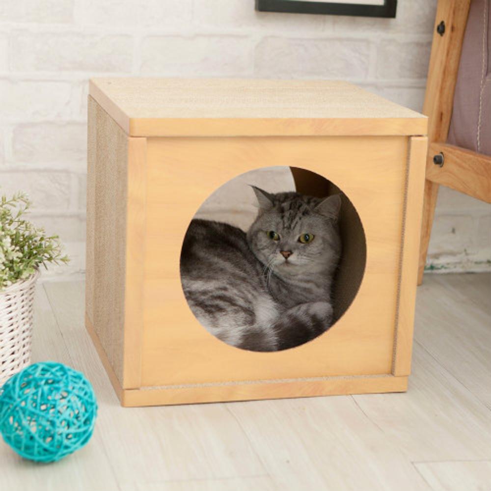 ・耐久性に優れ、GBoardと呼ぶフラットで強力な紙パネルで作られている、つめとぎ付きキャットハウス。