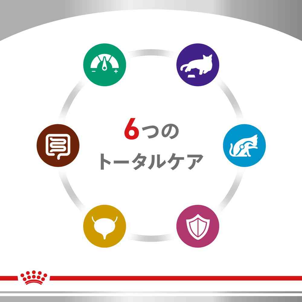 肉類(鶏、七面鳥)、コーン、植物性繊維、超高消化性小麦タンパク(消化率90%以上)、小麦、コーングルテン、加水分解タンパク(鶏、七面鳥)、動物性油脂、チコリー、魚油(オメガ3系不飽和脂肪酸〔EPA+DHA〕源)、サイリウム、マリーゴールド、アミノ酸類(DL-メチオニン、タウリン、L-カル二チン)、ミネラル類(Cl、K、Na、Ca、P、Zn、Mn、Fe、Cu、I、Se)、ビタミン類(A、コリン、D3、E、C、ナイアシン、パントテン酸カルシウム、B2、B6、B1、葉酸、ビオチン、B12)、酸化防止剤(ミックストコフェロール、ローズマリーエキス)※粒の色、形、大きさ等のばらつきは天然由来の原材料を使用しているために起こるもので、品質に問題はありません。