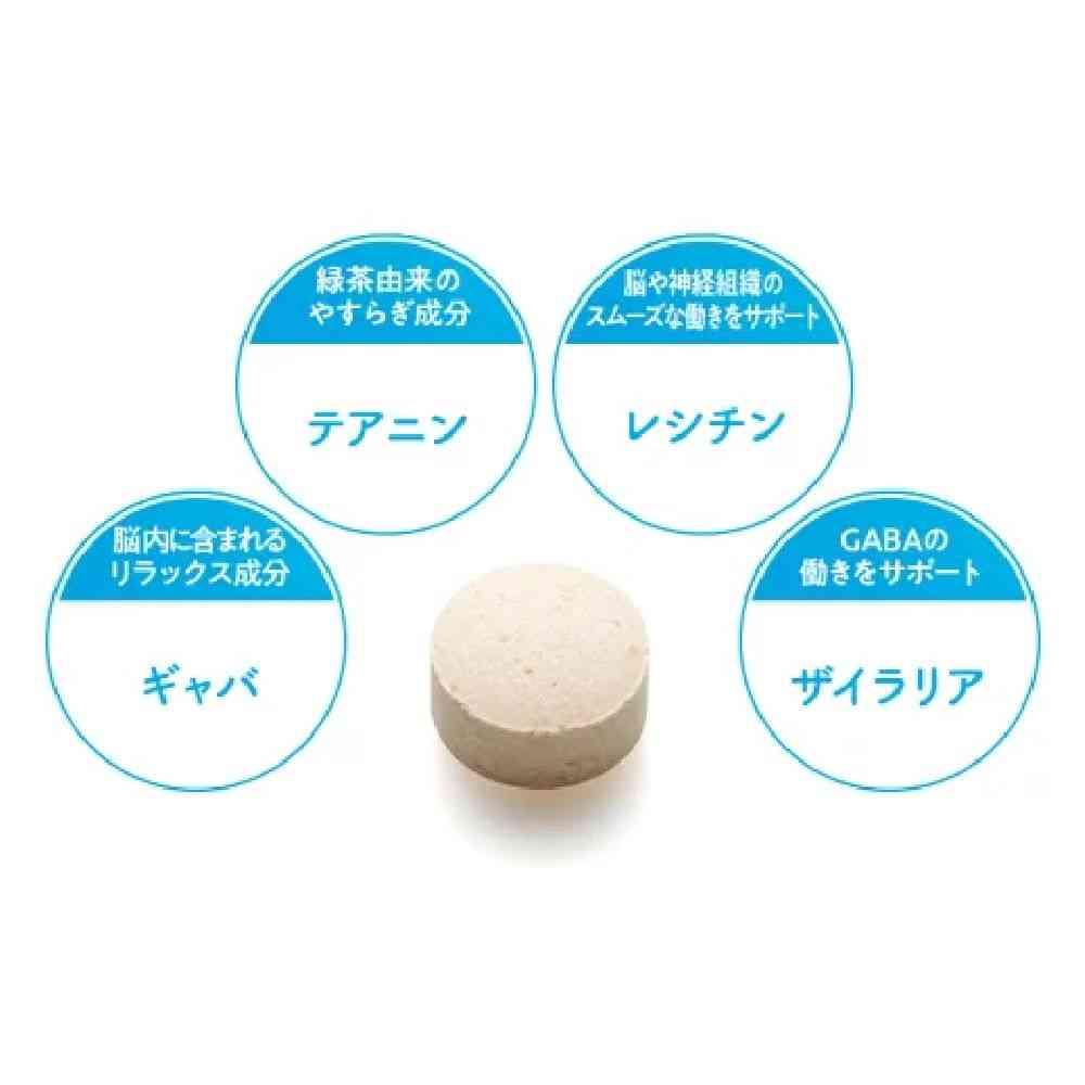 興奮を和らげ、リラックスに役立つテアニン、レシチン、ギャバ配合。