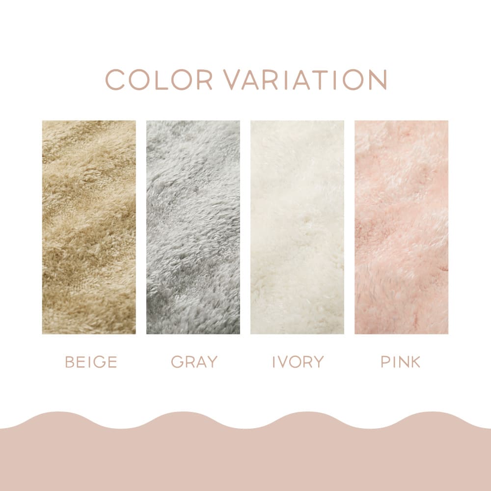 表面をなめらかな凹凸にカットし、独特なポコポコ感を表現。目付量約1100g/m²のしっかりとした密度でボリューム感たっぷりの贅沢な一枚に。光沢のある糸は光の当たり方によって様々な表情をみせてくれます。また、ホルムアルデヒドの試験を乳幼児の基準でクリアしているため、小さなお子さまやペットの居るご家庭でも安心です。裏面にはラグのずれを防止する滑り止め加工付き。ホットカーペットや床暖房の上に敷いてもお使いいただけます。
