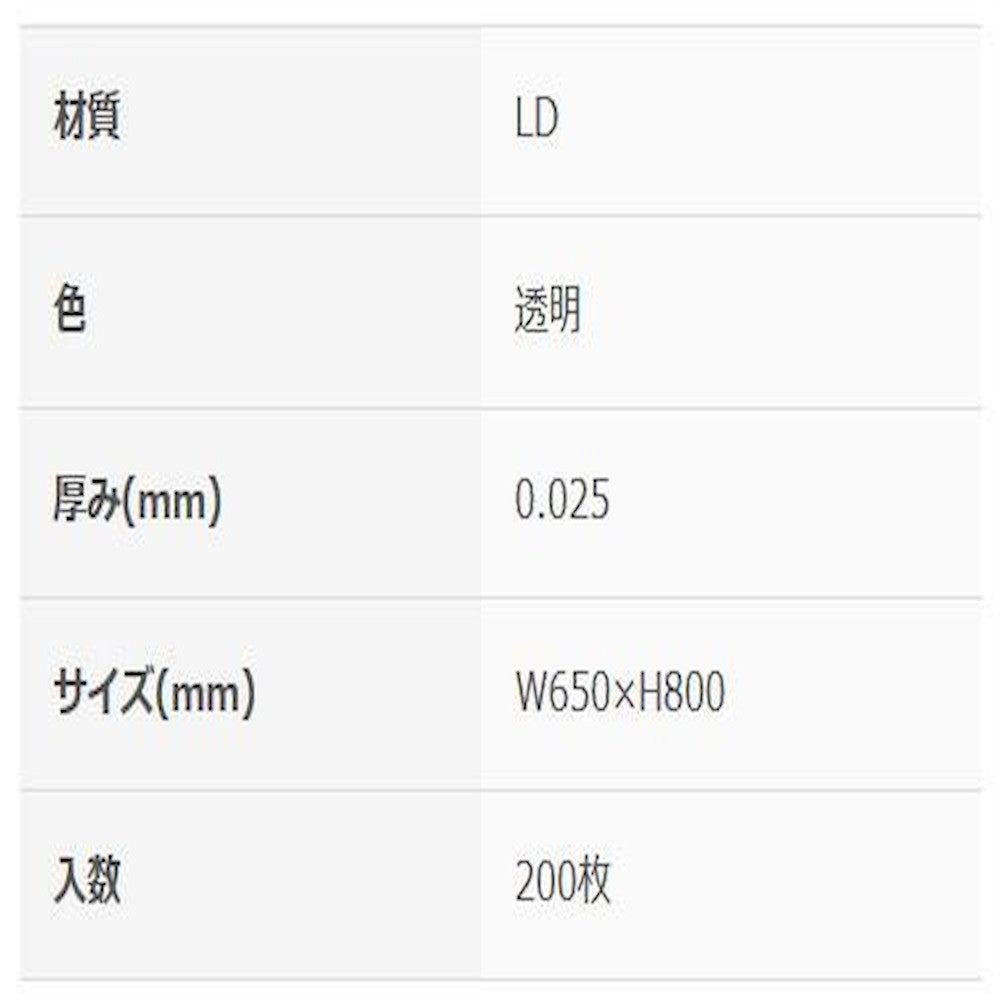 サイズ: 200枚入り、サイズ:0.025mm×650mm×800mm