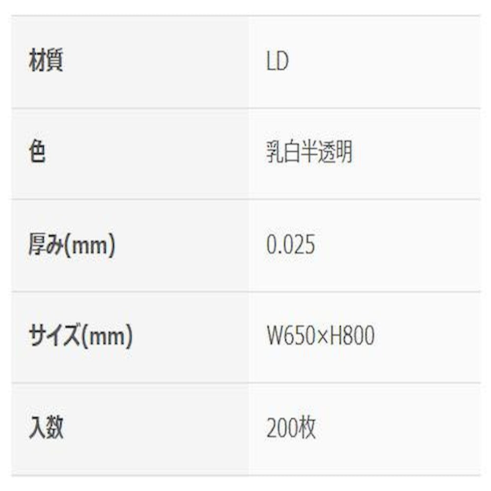 サイズ: 200枚入り、サイズ:0.025mm×650mm×800mm
