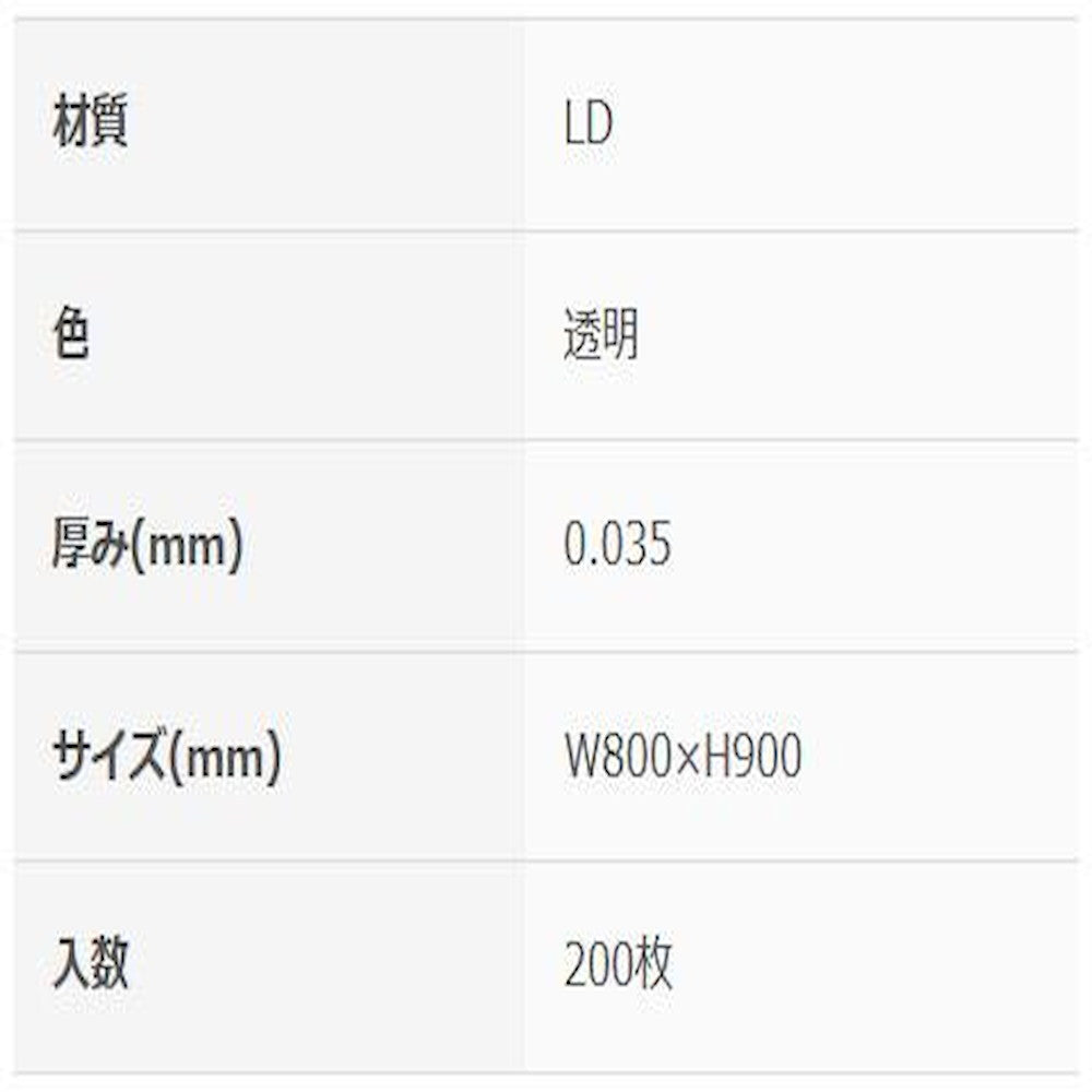 サイズ: 200枚入り、サイズ:0.035mm×800mm×900mm