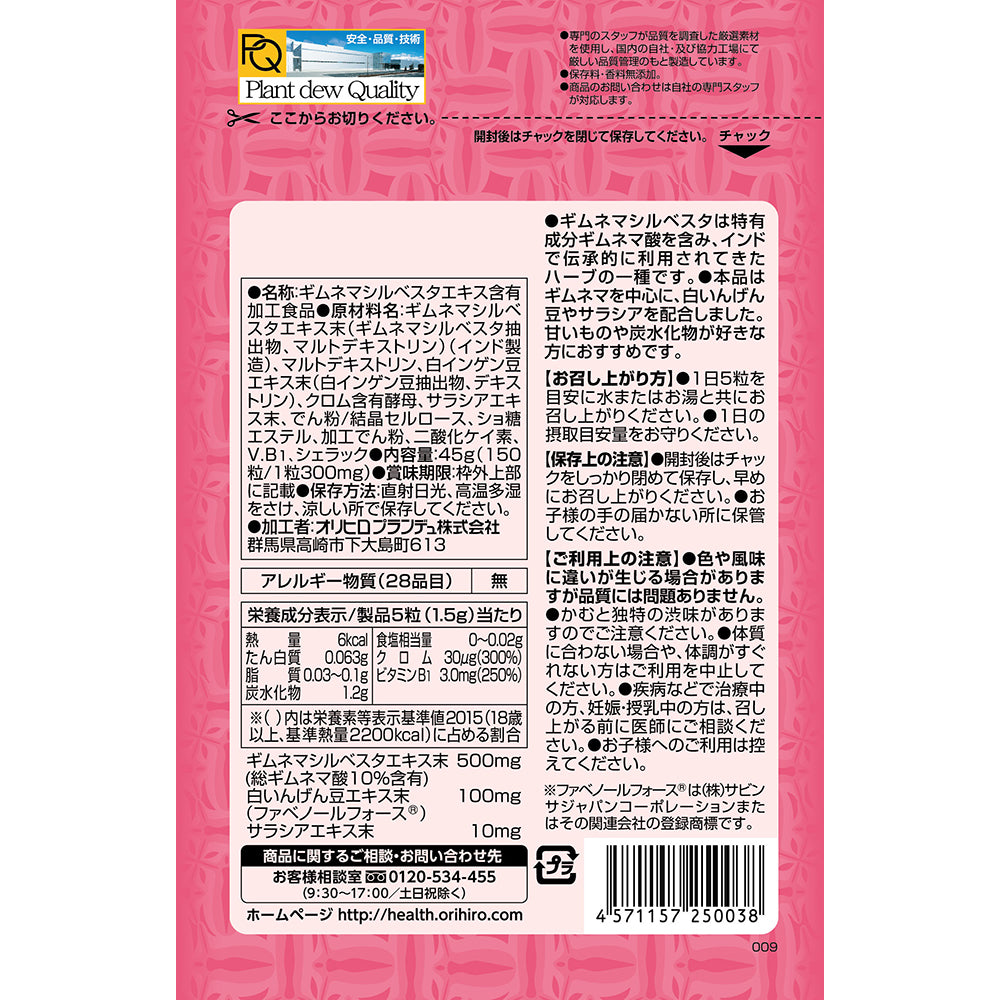 匙羹藤提取物粉、麦芽糖糊精、白芸豆提取物粉、桑叶提取物粉、含铬酵母、淀粉/结晶纤维素、蔗糖酯、变性淀粉、二氧化硅、V.B1、虫胶
