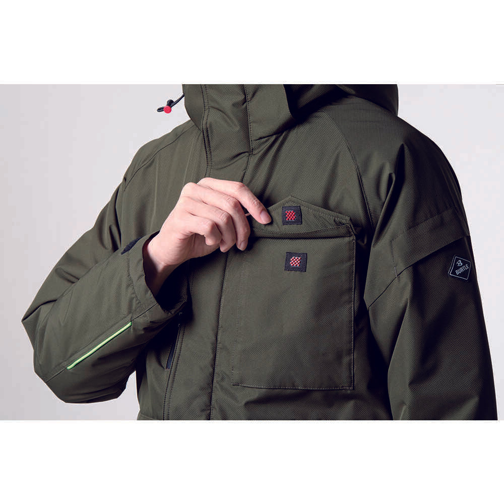 ●2レイヤー高密度リップクロスを使用することで、耐水性、透湿性、防風性、撥水性すべてを網羅しています。●ライムリフレクター(反射材)を袖に配備し夜間の視認性をUPしています。●色:ミルスグリーン●サイズ:XXL●着丈(cm):78●胸囲(cm):134●対水圧15●000mm 質量750g
