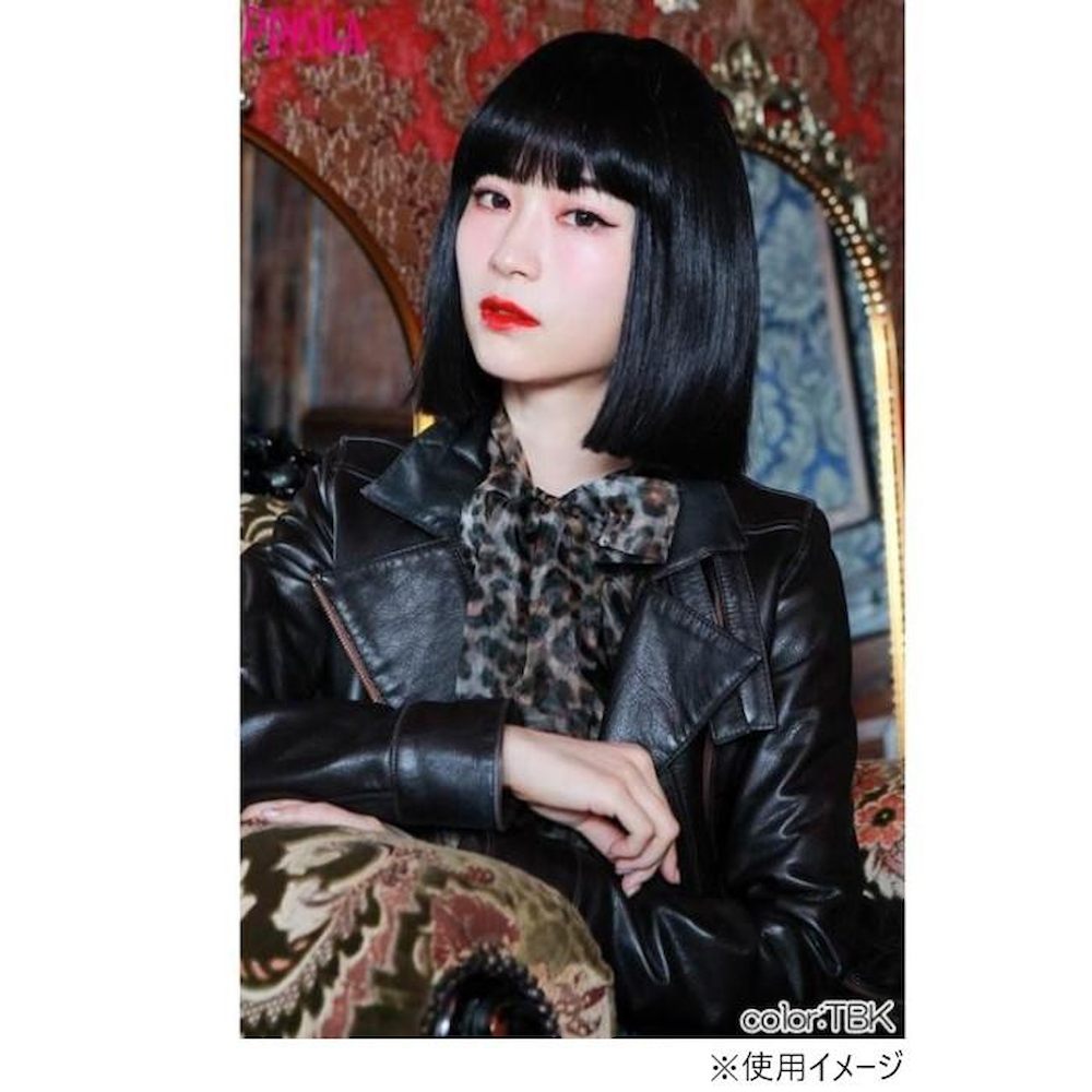 モード感強めの切り揃えたような重ためボブヘア。ウィッグならではの個性派スタイルを気軽に楽しんで。