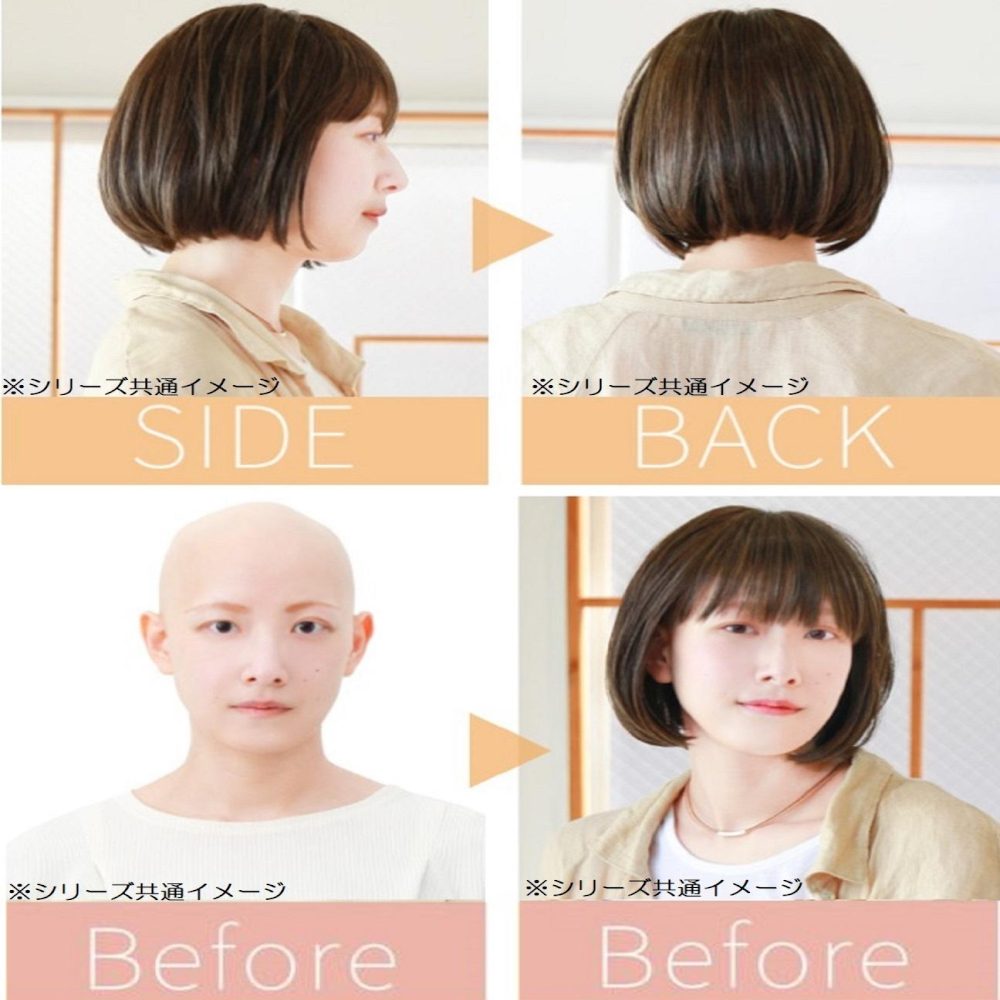 自毛をまったく見せずにスッポリかぶる「かつら」タイプ。ウィッグの内側に「帽子」がついている仕様です。