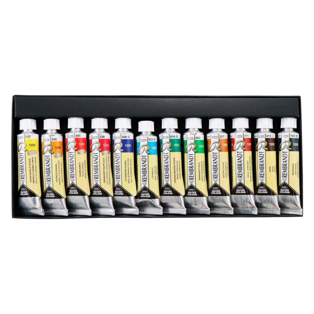 ターレンス レンブラント水彩絵具10ml ベーシック12色紙箱セット RWC10-B12 489320 配色良く基本色を集めたベーシック12色セット 油絵具の高級ブランドとして知られるオランダ・ロイヤルターレンスの「レンブラント」です。厳選された顔料と無色のアラビアゴムを使用し、輝きのある透明感を表現できます。耐光性に優れ、作品を安心して長期保存できます。配色バランスの良い基本色をセレクトしたセットです。