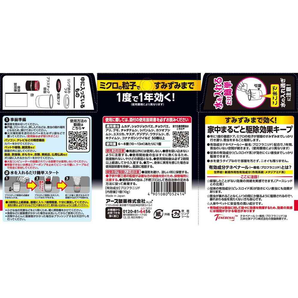 ●含有有效成分替尼苯醛(通用名:溴苯苯胺),让空间一年无虫害。 (持续时间因使用环境和害虫类型而异。)