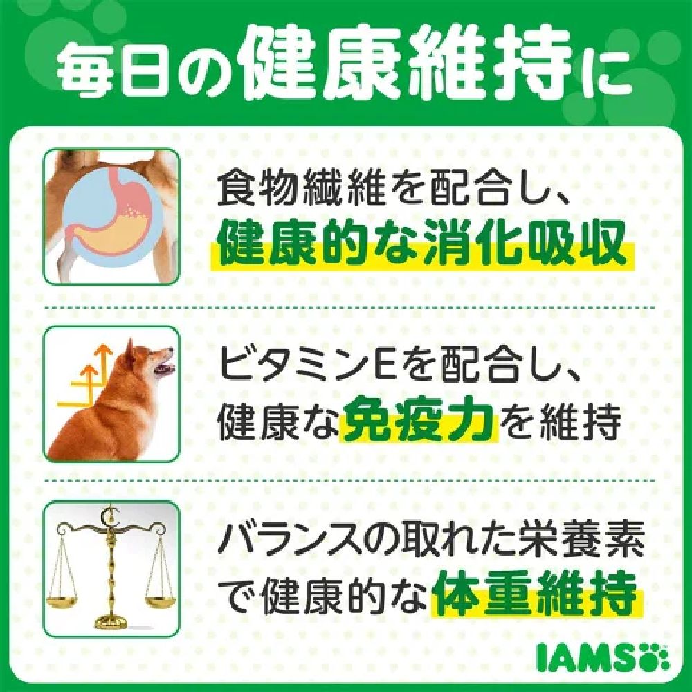 全ての成犬の健康な生活のために最適な製品設計。ワンちゃんが大好きなチキンを使用。