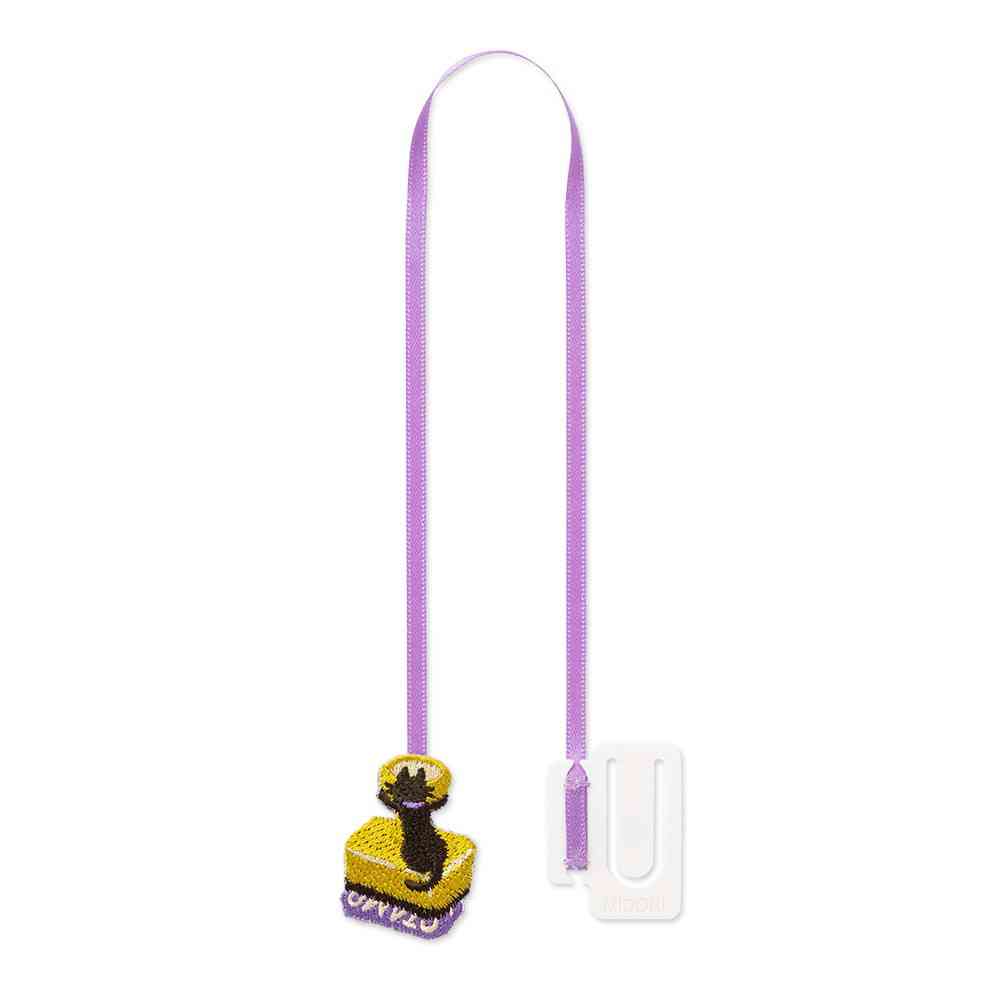 手帳や日記などにクリップで挟み込むだけで、かわいい刺繍チャームがついたしおりになります。