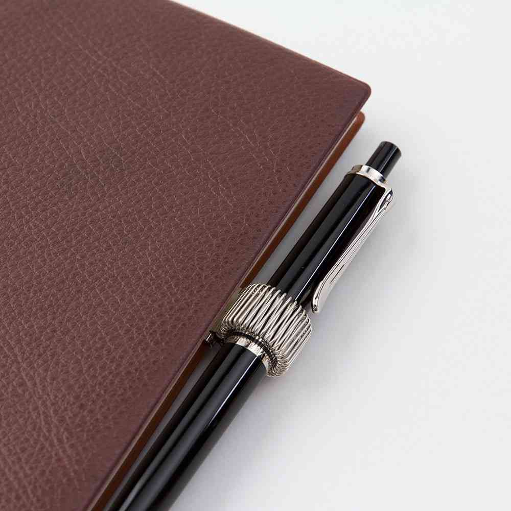 手帳にクリップでしっかり留まる、便利なペンホルダー。