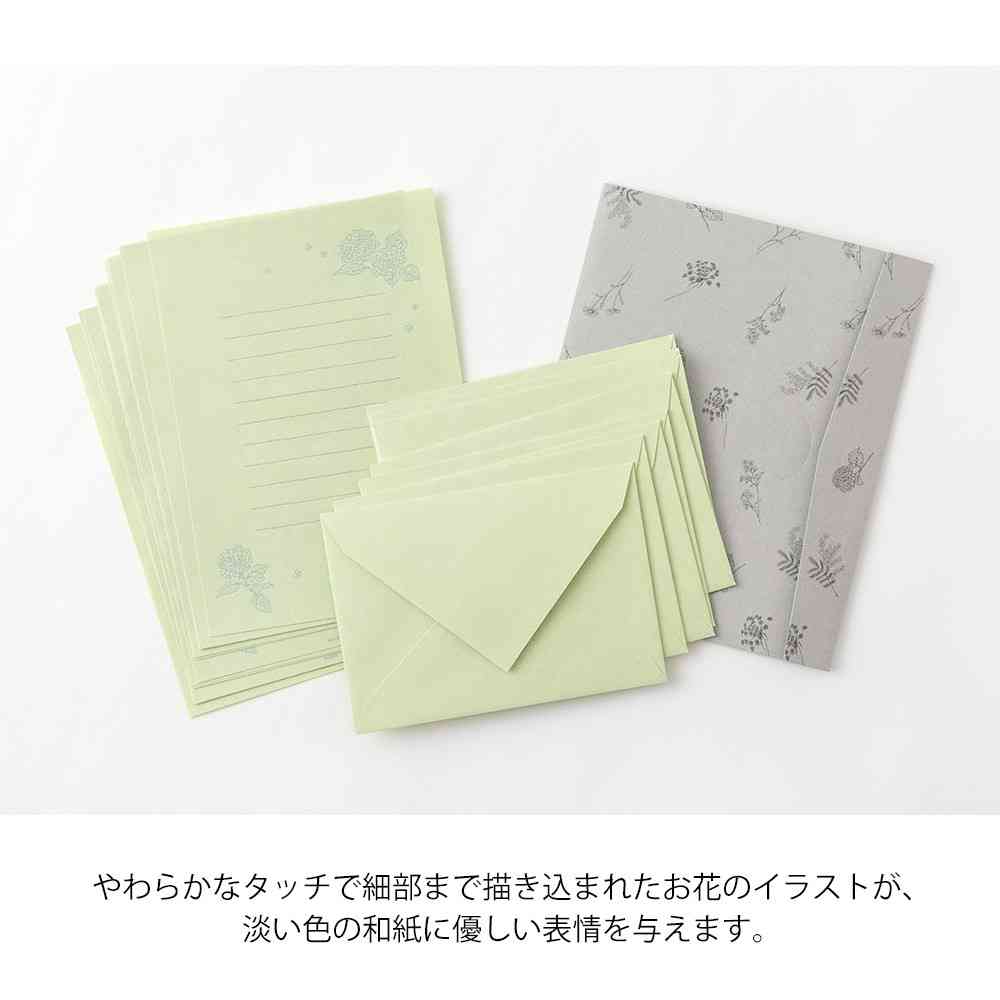 それぞれの花が持つやわらかな色合いを大切に、オリジナルの越前和紙を漉いてレターセットを作りました。