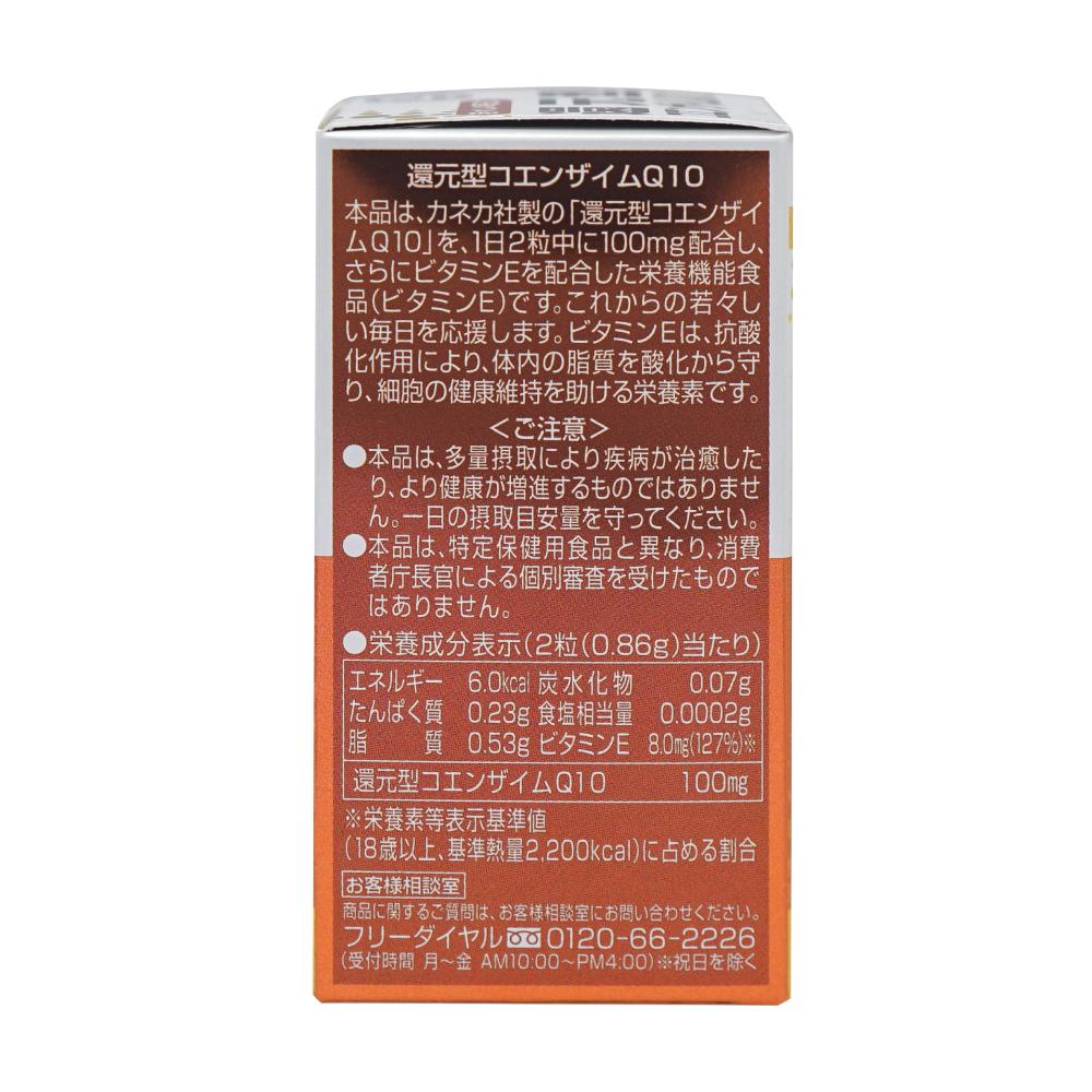 本产品是营养功能声称(维生素E)的食品,每天两粒胶囊含有100毫克Kaneka的“还原型辅酶Q10”,以及维生素E。