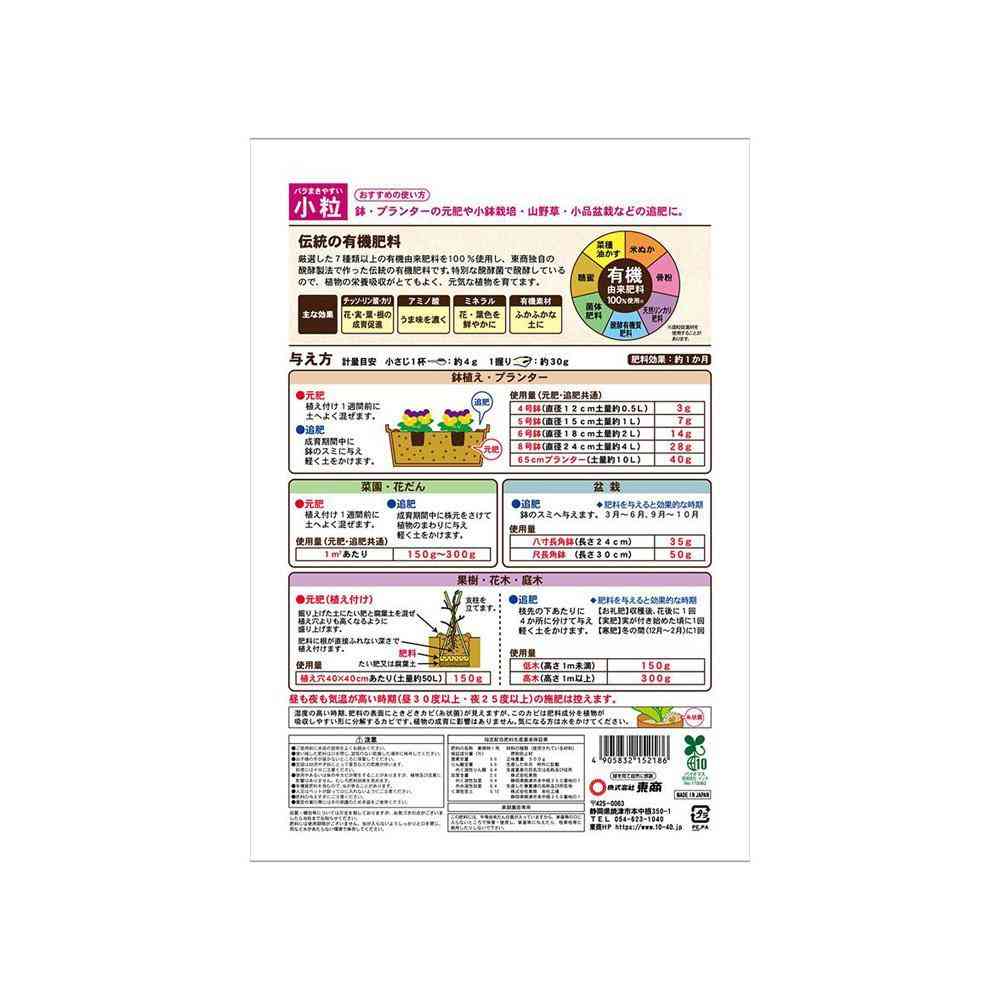厳選した7種類以上の有機由来肥料を100%使用し、東商独自の