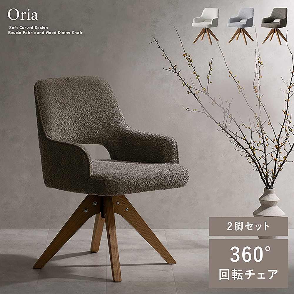 曲線と直線のバランスが美しい、ダイニングチェア『Oria(オリア)』。光の角度によって表情を変えるブークレ生地と天然木オーク材が、空間に上質な印象を与えます。身体に沿った背もたれと、ゆったり座面の快適な座り心地。座面は360°の回転が可能で、立ち座りもスムーズ。 毎日の食卓を、より優雅で心地よいひとときへと導きます。製品重量:9.4kg 組立式(約20分)