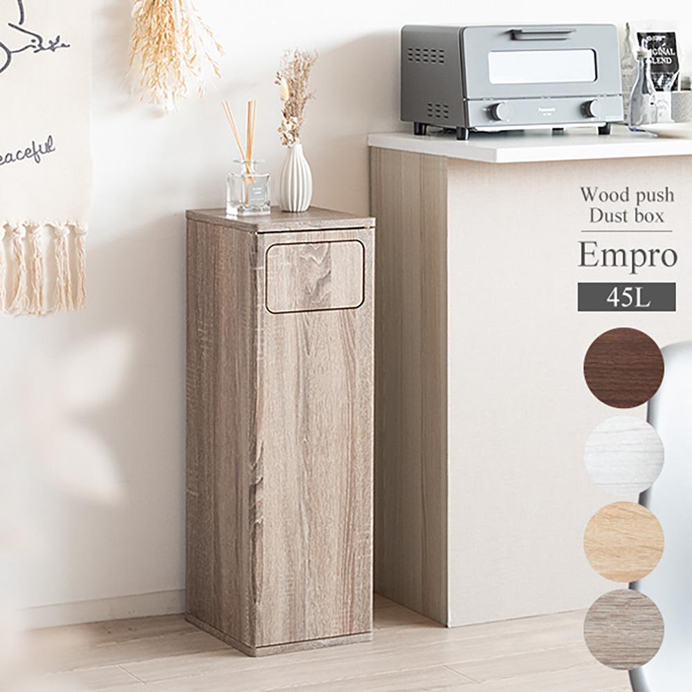 ゴミ箱だと分かりにくいスタイリッシュなデザインでお部屋に馴染む、木製プッシュ式ダストボックス『Empro(エンプロー)』。匂いが漏れにくく押すだけで簡単に捨てられるプッシュ扉式。ゴミ袋の着脱も簡単な前扉があり、利便性も抜群です。幅25cmとスリムタイプなので省スペースでキッチンやカウンターの隙間に置けます。場所を選ばないデザインでリビングやデスク、寝室にも最適。