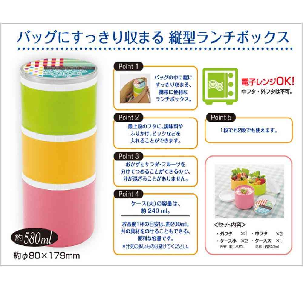 バッグの中に縦にスッキリ収まる、携帯にも便利なランチボックス。