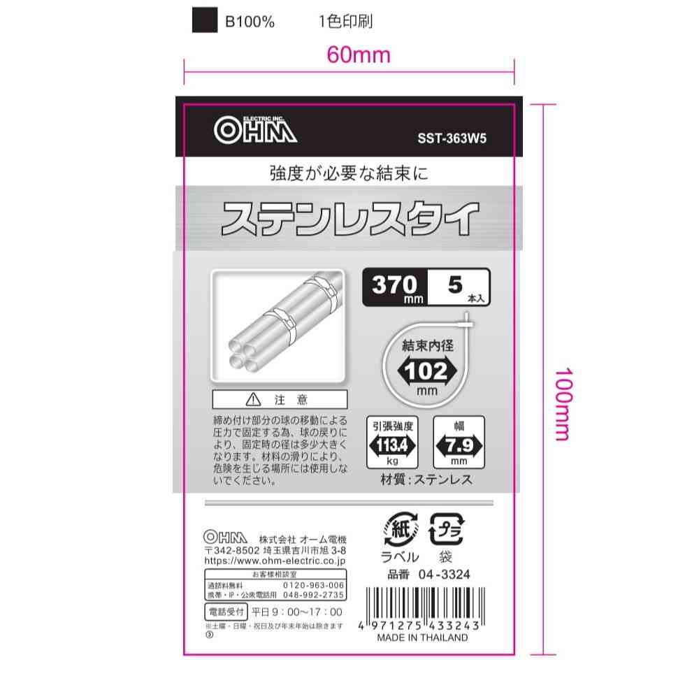 オーム電機 ステンレスタイ 370mm SST-363W5 5本入