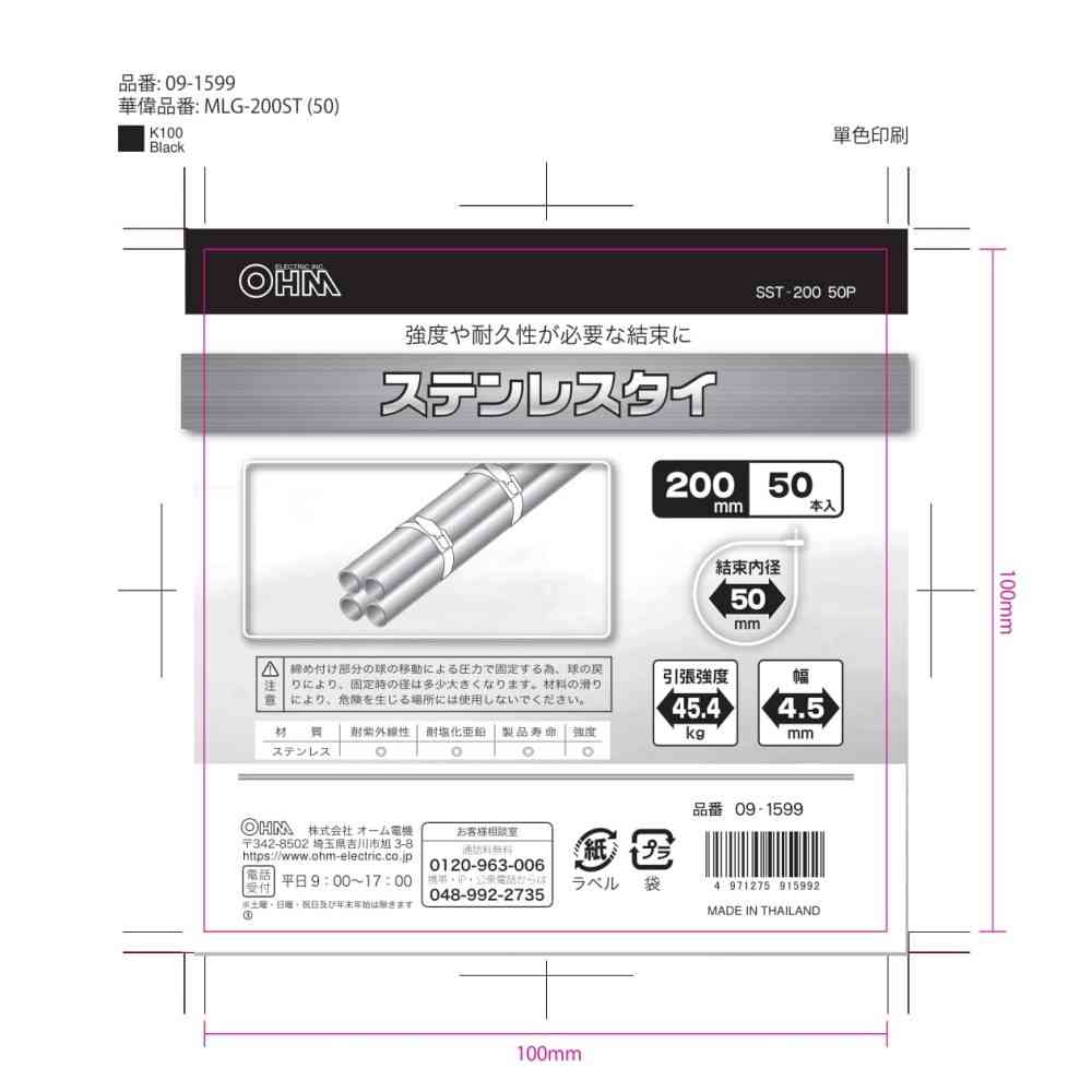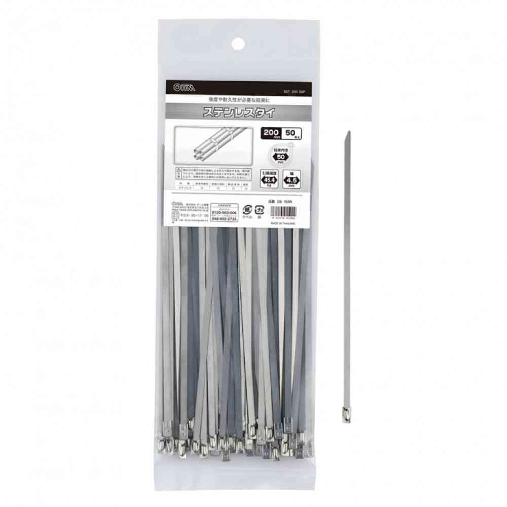 オーム電機 ステンレスタイ 200mm SST-200 50P 50本入