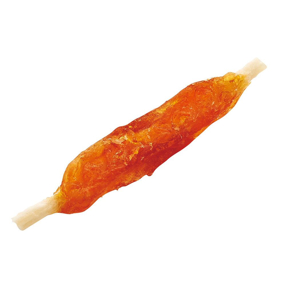 牛皮ガムを細くやわらかに仕上げしっとりとした鶏ササミを巻いてあるので無理なくおいしく噛み続けることができる嗜好性の高いスナックです。