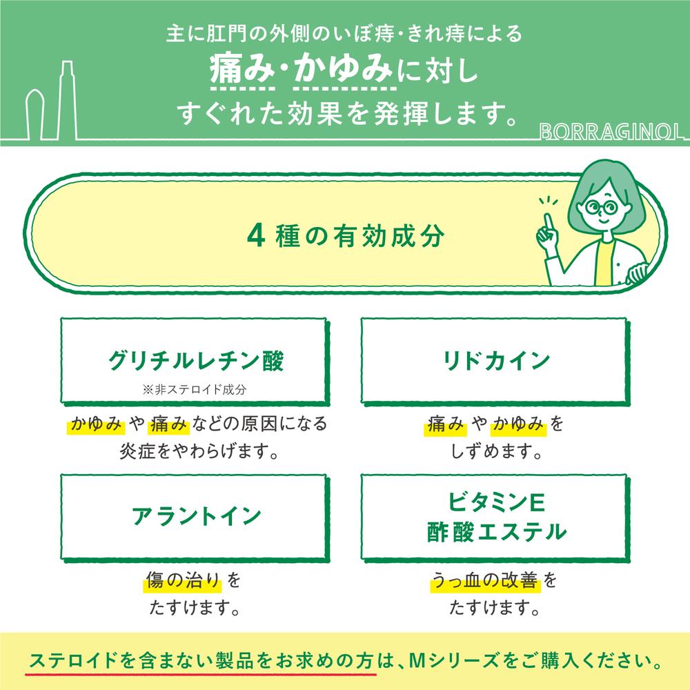 1. 四种成分协同作用,对痔疮引起的疼痛和瘙痒有卓越的效果。