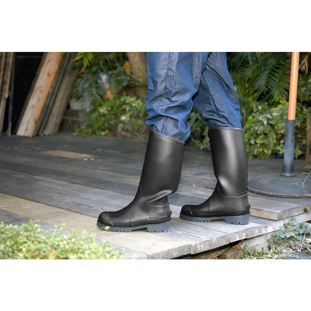 ●内側に4mmメッシュウレタン裏布がついているため、防寒効果があります。●軽量配合ゴムを使用しているので軽く動きやすいです。●滑りにくい靴底形状で、雪道でも防滑効果を発揮します。●踵にキッカーが付いているので楽に脱ぎ履きできます。●履口が斜めにカットされているので膝裏にあたりません。●寸法(cm):26.0●足幅サイズ:EEE●靴丈(cm):39.0●色:ブラック●US(アメリカ)規格サイズ:8●UK(イギリス)規格サイズ:7.5●EU(ヨーロッパ)規格サイズ:42●履口周囲(cm):40.5 質量1.6kg