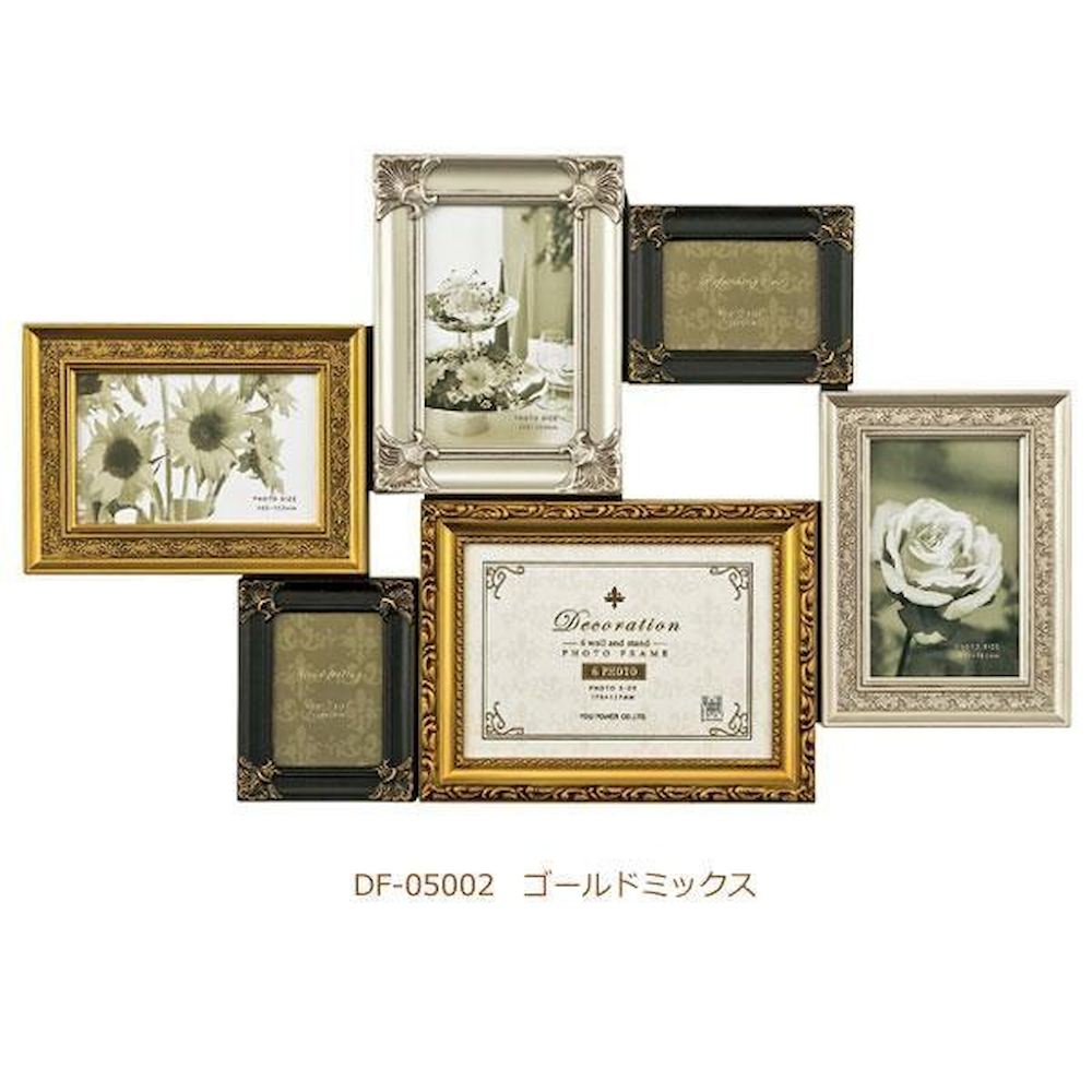写真立て デコレーション 6 ウォール&スタンドフレーム DF-05002・ゴールドミックス 壁掛・卓上両用。雰囲気漂うアンティーク調フォトフレーム ずっと大切にしたい写真をセットしてワンランク上のお部屋に!お部屋のディスプレイとして最適な大人気商品です。センスの良いプレゼントとしても喜ばれています。