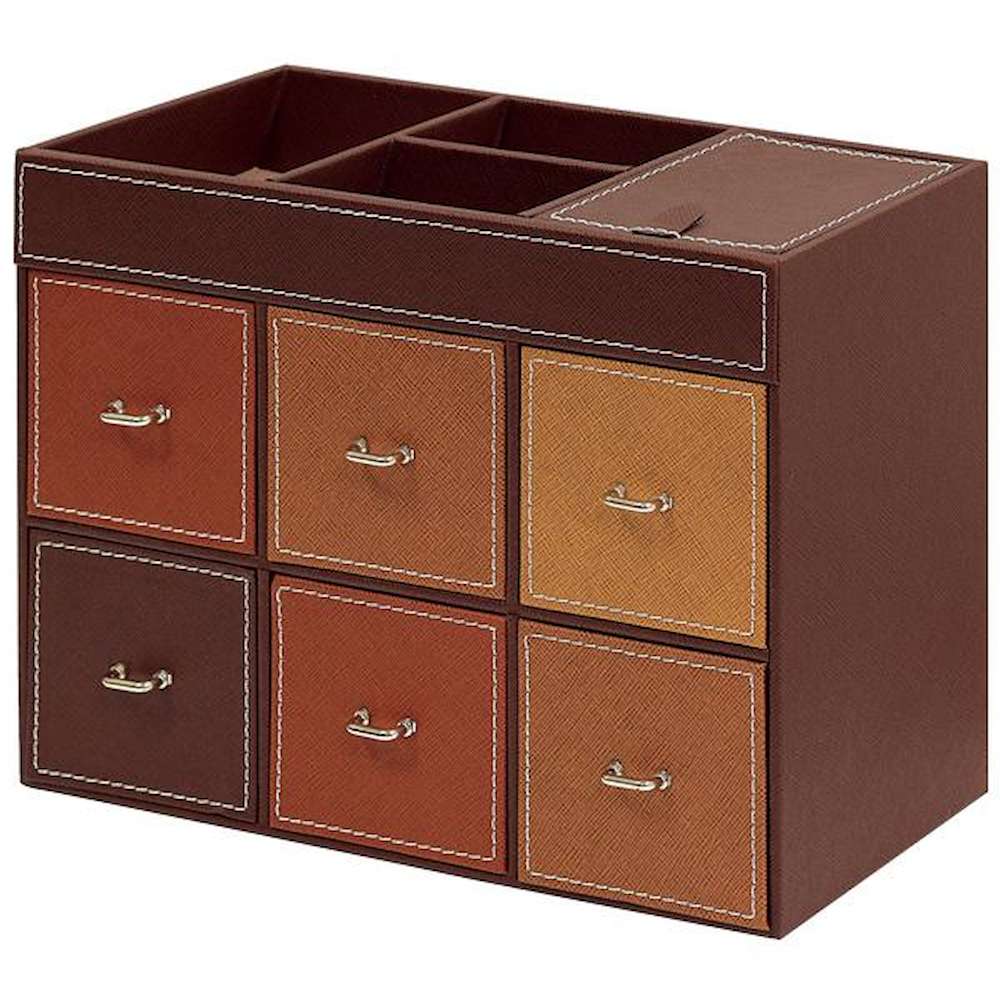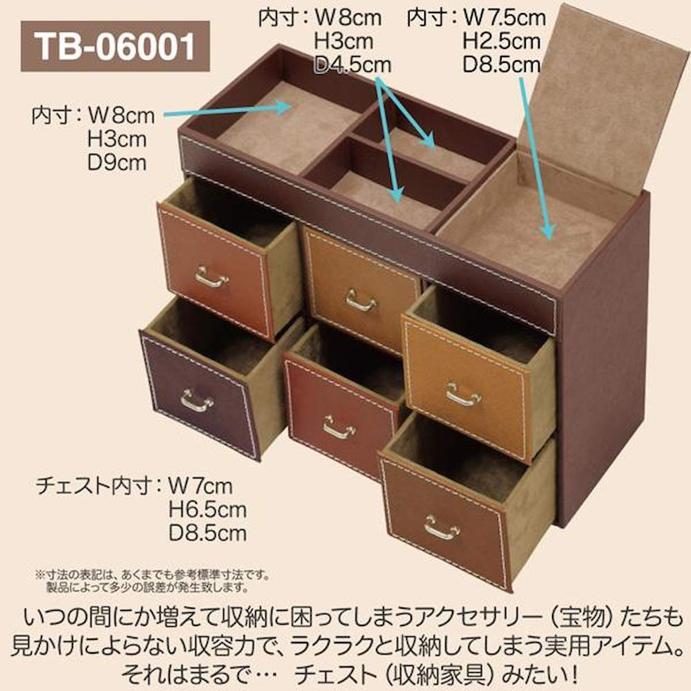 ユーパワー トレジャー チェスト ボックス 6段チェスト(トレー付) TB-06001 なんでも入れられてすぐに探せるチェストBOX。 4色のシックなブラウン系のPUレザーを使ったチェストボックスなので、アクセサリーや小物など、なんでも入れて便利に使えます。