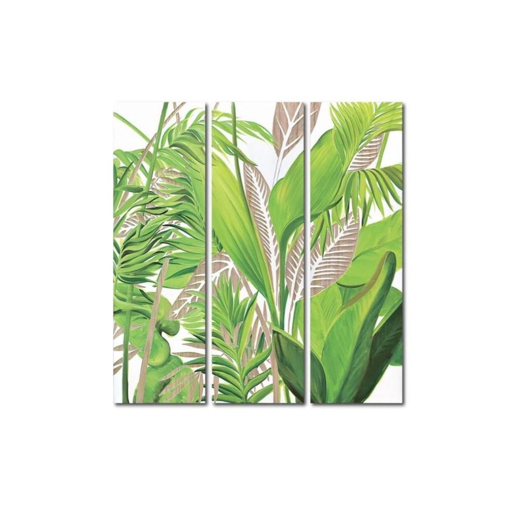 スタイリッシュなインパクト リッチなサイズの3枚組のウッドボードにハンドペイントされたナチュラルグリーンのリーフ柄。その上に手彫りされたリーフやウッド柄が、スタイリッシュなインパクトをインテリアにもたらします。