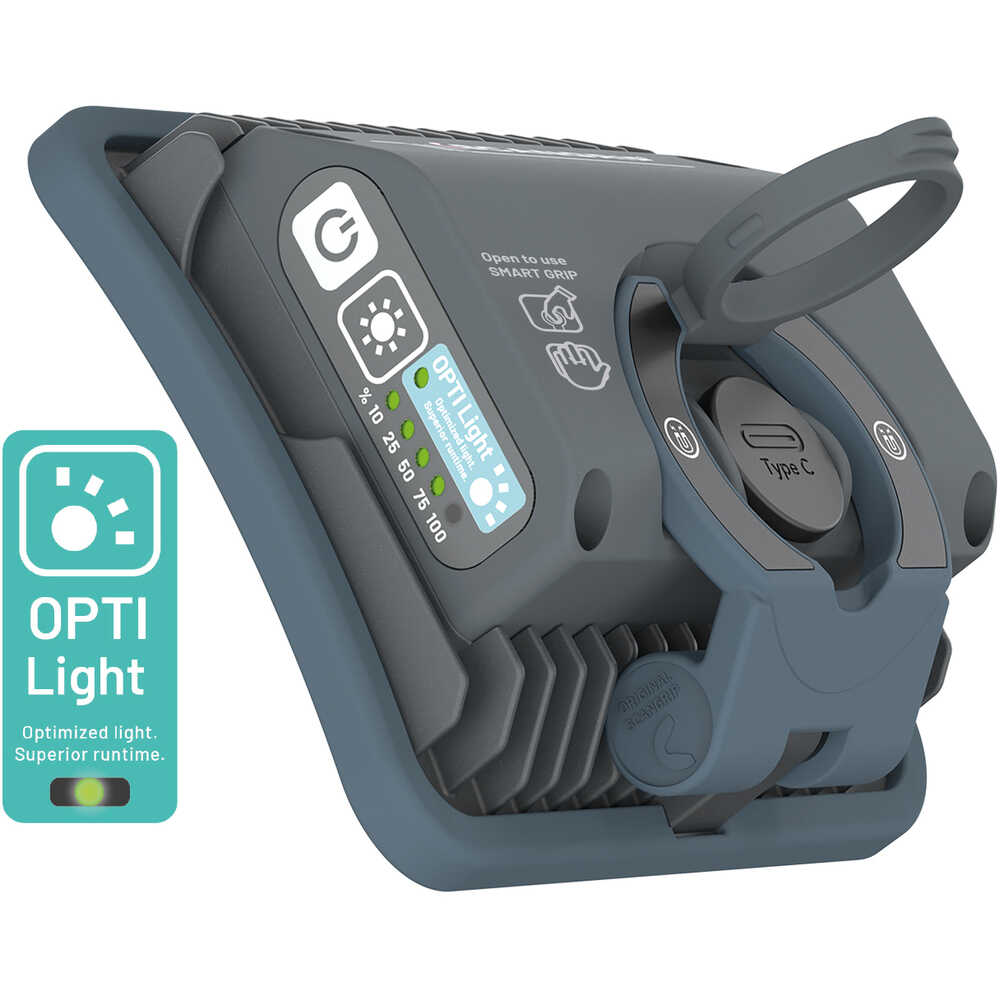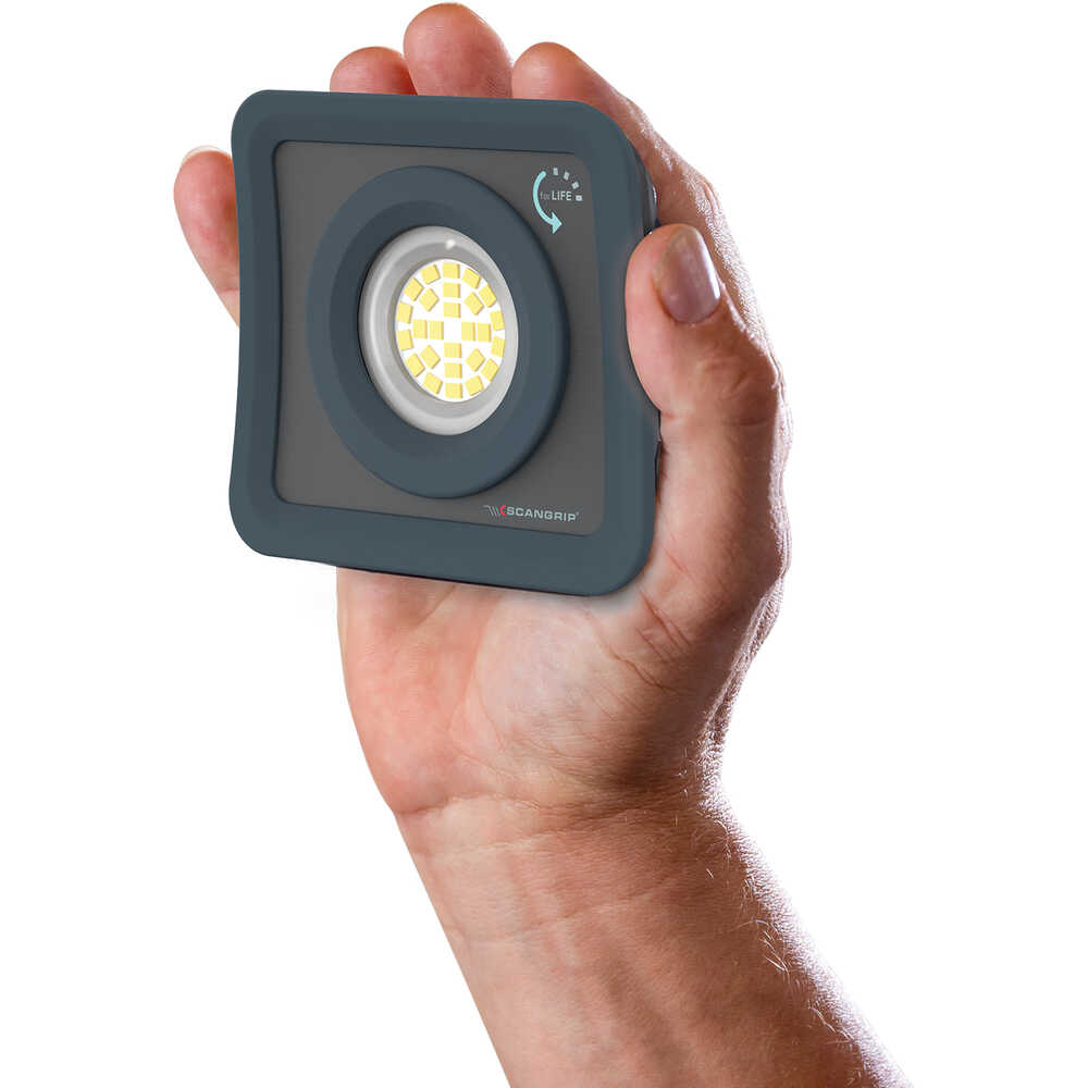 ●バッテリーは1000回充電後も80%以上の容量確保が可能です。●一般的なLEDライトの2倍以上の製品寿命です。●超小型軽量で、手持ち、据え置き、マグネット保持、クリップ留めと4通りの使用方法が可能です。●裏面のリングに指を通して手持ちライトとして快適に使用できます。●IP65の防水・防塵性能とラバー素材プロテクションにより耐久性に優れます。●OPTILightボタンを押すとワンタッチで一般的作業に必要な明るさが出力されます。●バッテリーインジケーター付きでバッテリー残量が可視化できます。●リサイクル原料を46%使用しています。●明るさ(lm):100~1000●幅(mm):94●奥行(mm):39●高さ(mm):102●電源(V):充電式リチウムイオン電池:3.6V/3200mAh●消費電力(W):7.3●使用電池:リチウムイオン電池3.6V/3200mAh●最大点灯時間(h):18(100lm使用時)/1.5(1000lm使用時)●充電時間(時間):4●保護等級:IP65●最大点灯時間:18時間(100lm使用時)/1.5時間(1000lm使用時) 質量278g