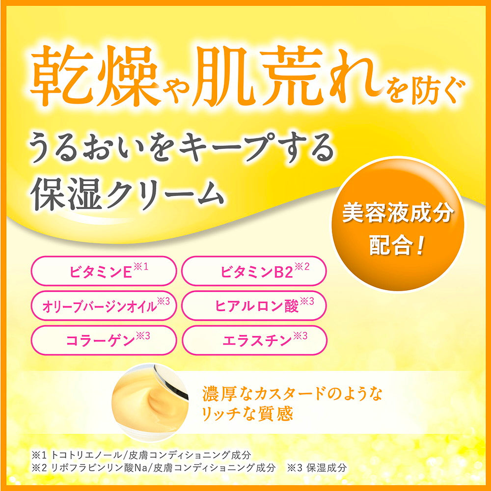 水、BG、トリ(カプリル酸/カプリン酸)グリセリル、オリーブ油、ステアリン酸、水添パーム油、ペンチレングリコール、ステアリン酸グリセリル(SE)、ステアリン酸グリセリル、ユビキノン、ヒアルロン酸Na、加水分解コラーゲン、加水分解エラスチン、バチルアルコール、フェノキシエタノール、アルギニン、ベヘニルアルコール、セリン、ジメチコン、トコトリエノール、リボフラビンリン酸Na、オリーブ葉エキス、パーム油、シアノコバラミン、セイヨウシロヤナギ樹皮エキス