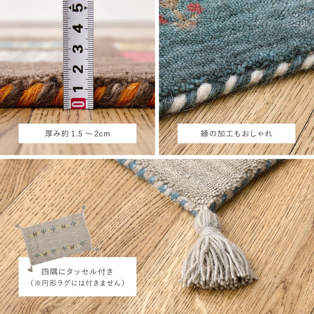 たっぷりの天然ウールを織り込み、ふんわりとした足ざわりと優れた弾力性を両立。夏はさらりと涼しく、冬はあたたかく、一年中心地よくお使いいただけます。また、ウールには水をはじきやすい性質もあり、汚れに強いのも特長。ホットカーペットや床暖房にも対応し、通年使いやすい一枚です。