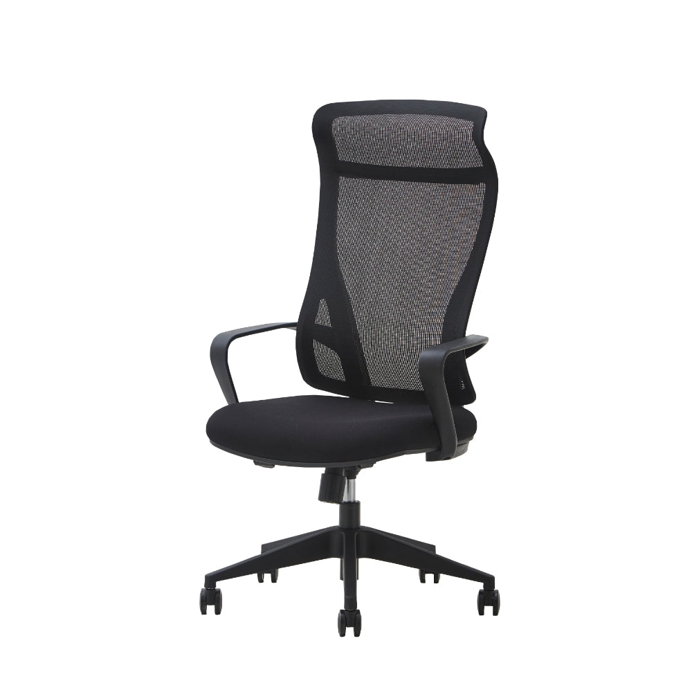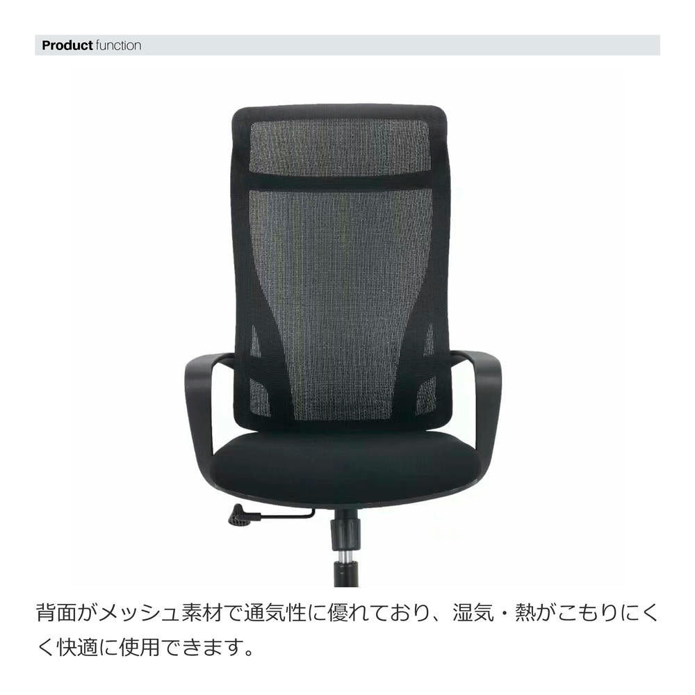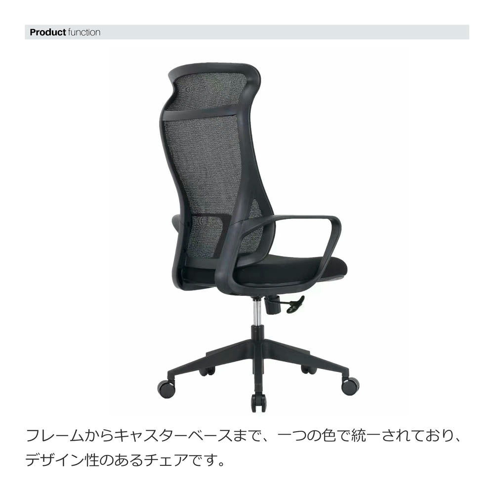 張地やフレーム、キャスターベースまでをワントーンカラーで統一したメッシュチェア。背もたれはハイバック仕様になっており、頭部や首をしっかりと支えます。メッシュ生地のため、通気性が良好です。昇降機能とロッキング機能付き。