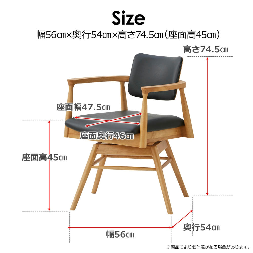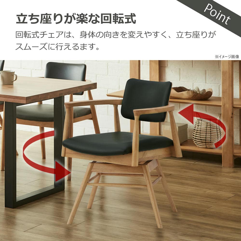 ダイニングチェア カストロ 回転式 ナチュラル 合成皮革 座面ブラック 【直送品】 返品・キャンセル・他商品と同時購入は不可