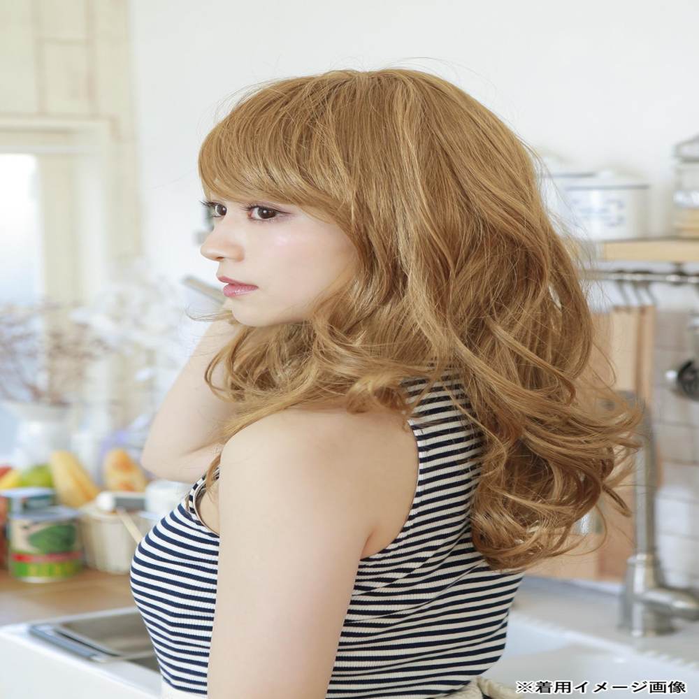 (お求めの際はよくご確認の上ご購入をお願い致します)リッチな重さ×ランダムな動きが新鮮なロングカール。自毛をまったく見せずにスッポリかぶる「かつら」タイプのウィッグ。