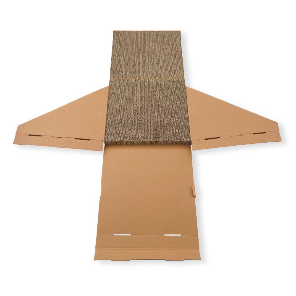 バリバリボードは背面つめとぎの高さが「70cm」。つめとぎは立ってしたいタイプの猫ちゃんが、思い切り体をのばしてのびのびつめとぎできる高さです。底面部分は奥行き38cm、幅36cmでどっしり支えます。底面部分はつめとぎできるだけでなく、隠れ家としてのくつろぎスポットとしても使えます。