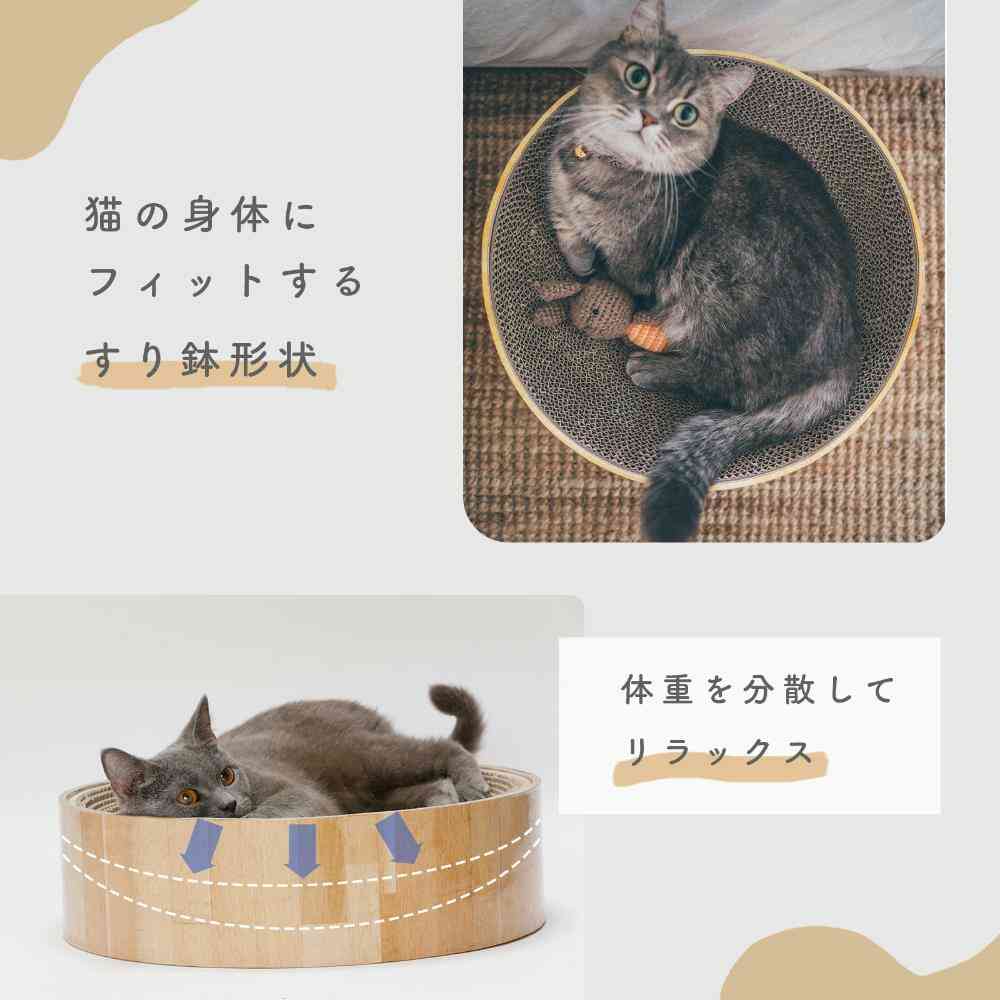 猫のカラダにぴたりとフィット♪猫が入りたくなるすり鉢構造のつめとぎベッドです。