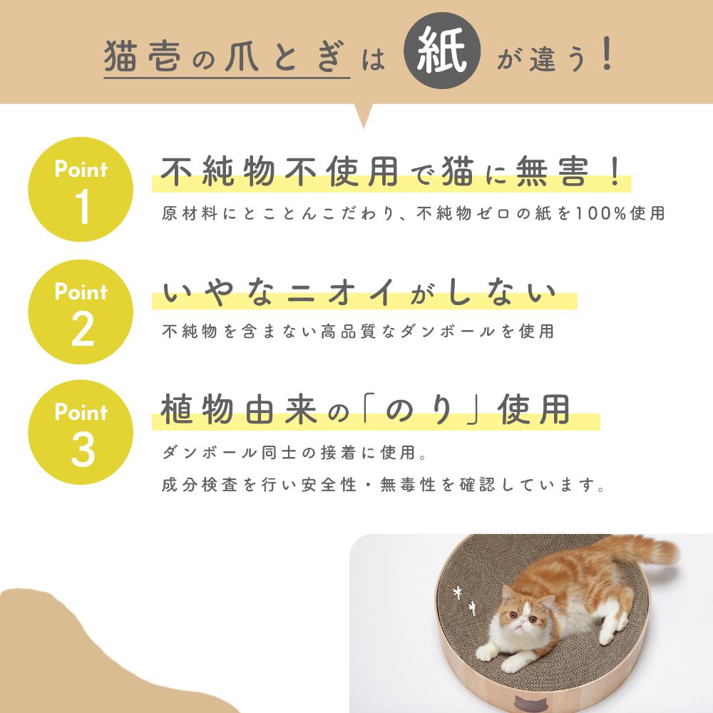 ・つめとぎは重みがございますが、誤った取扱をすると、人や猫が怪我する恐れがあります。安全に使用できる場所を選び、使用中は十分にお気を付けください。