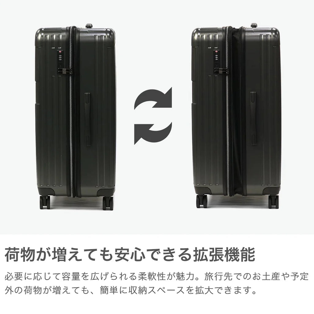 人気北欧ブランド「SCANDINAVIAN FOREST」からスーツケースが登場!100Lから105Lに拡張でき、長期旅行も余裕の収納力を持つLサイズのスーツケース。静音ダブルキャスターでスムーズな移動をサポートします。外側にはドリンクホルダーやフック機能も搭載し、使いやすさ抜群!シンプルでおしゃれな北欧デザインが旅を彩ります。使いやすい機能満載!キャスターは360度回転し、便利なストッパー機能も付いています。 お土産などを引掛けられるサイドフックやカップホルダー付き!●重量 (約):4.6kg●容量 (約):100/105L●旅行日数の目安:10泊程度●TSAロック:あり●仕様:ポケット×2