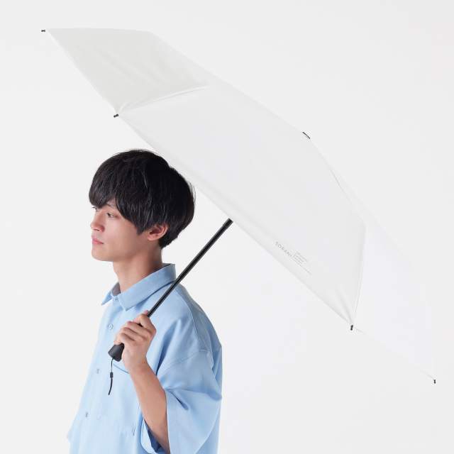 さらに、肌の深部に影響を与える近赤外線も100%遮断します。はっ水・防水機能を備え、耐水圧20,000mm以上を実測。親骨には柔軟性があって丈夫な太めのグラスファイバーを使用し、風を受けてもしなやかに受け流します(風速11m/sの調査済み)。雨の日も安心して使えるオールシーズン対応の晴雨兼用日傘です。親骨58cmサイズは、男性はもちろん大きめのサイズが欲しい女性の方にもおすすめです。傘骨は特殊な構造により手を離した位置でシャフトの伸縮が止まり、少しづつ段階的に収納できるので安全にお使いいただけます。シンプルな無地デザインで男女問わず使いやすく、バッグやベルトに掛けられるカラビナ付き。ケースの脇にファスナーがついているので収納しやすく、持ち運びに便利です。