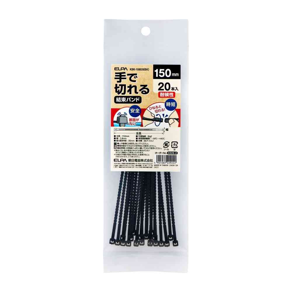 ELPA 手で切れる結束バンド 150mm 耐候性ブラック KBK-150020(BK) 20本入