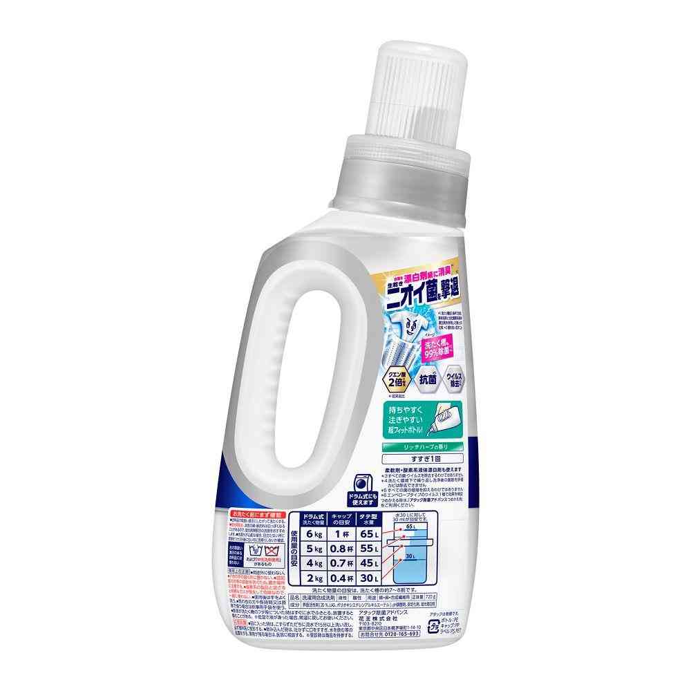 界面活性剤[20%、LAS、ポリオキシエチレンアルキルエーテル]、pH調整剤、安定化剤、蛍光増白剤