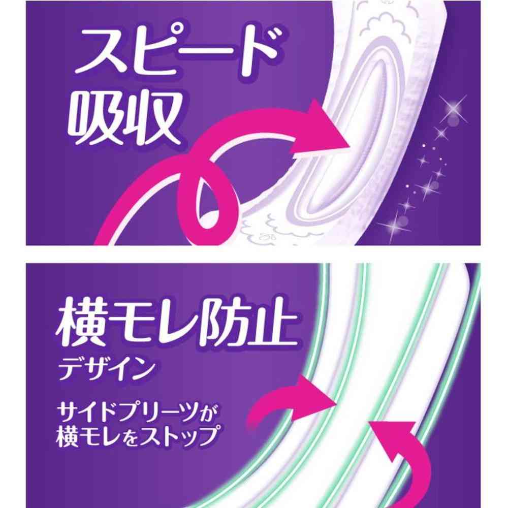 超スピード消臭技術で吸水後のにおいもすぐに消臭し、吸水後もスリムシートでうすくてさらさら。