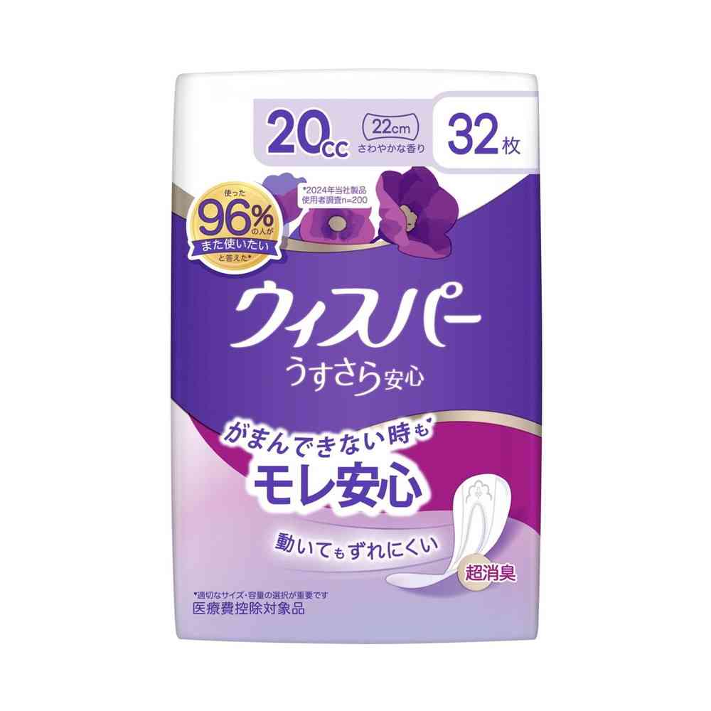 「ウィスパー うすさら安心 女性用 吸水ケア 20cc 少量用 ナプキン型尿ケアパッド 32枚入り 19cm (小量の尿モレ用)」は、