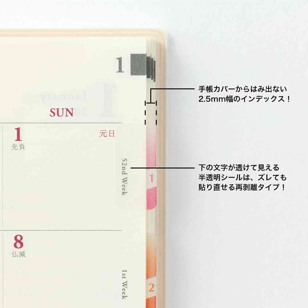 手帳をきれいにまとめるチラッと見えるインデックスラベル。
