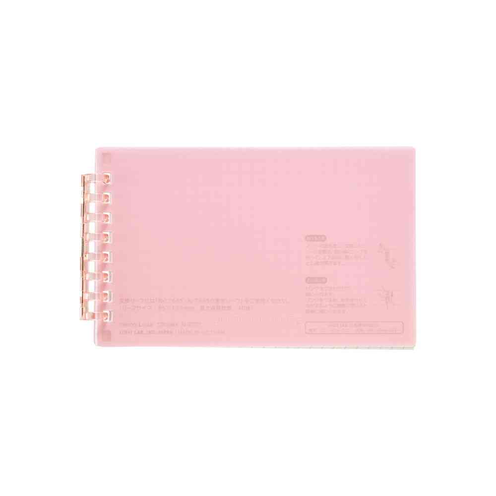 とじ具は表紙の色に合わせた色透明。360°折り返して使えるので省スペースで使いやすい。