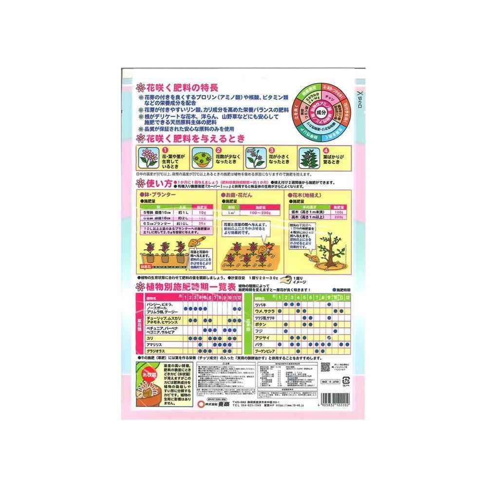 リン酸成分とカリが高く、天然プロリン、ビタミン類、核酸など花付きに効果のある栄養を豊富に含んでいます。