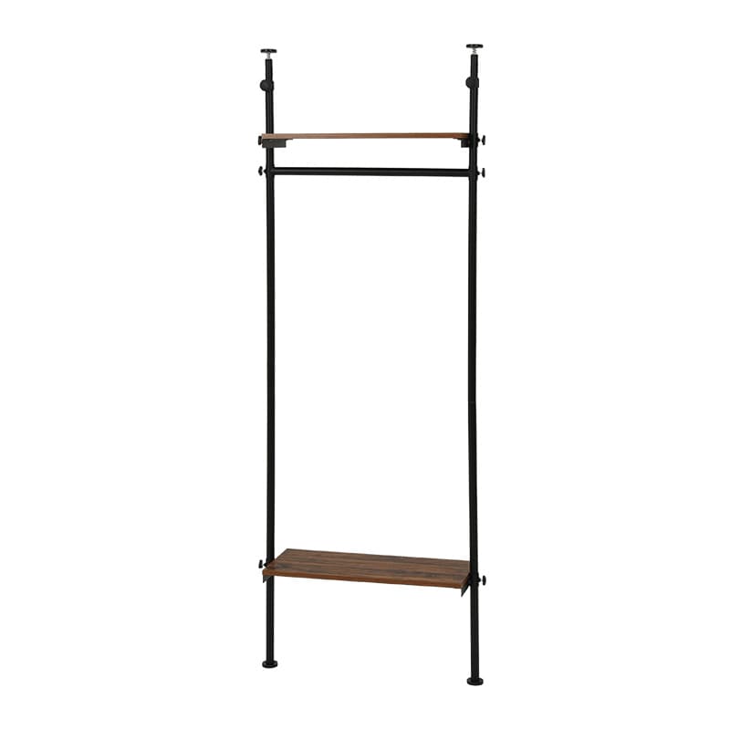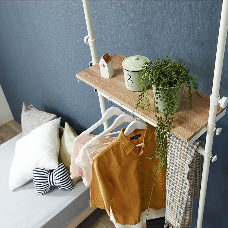 棚板とハンガーバーは無段階に高さ調節可能。スッキリ収納できるつっぱりハンガーラック。