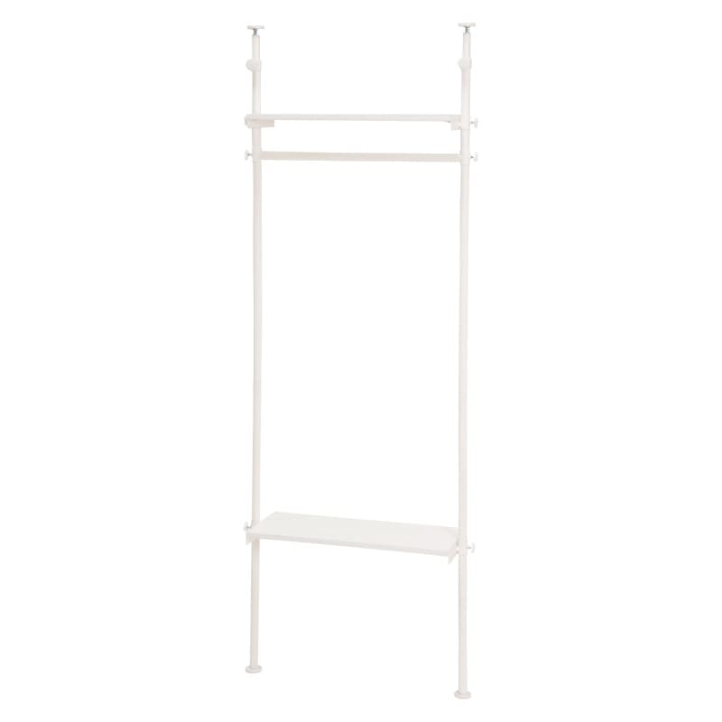 棚板とハンガーバーは無段階に高さ調節可能。スッキリ収納できるつっぱりハンガーラック。